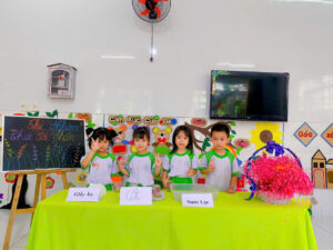👉 Các con nhẹ nhàng đặt tờ giấy ăn lên miệng cốc, úp ngược chiếc cốc… Và thật bất ngờ! Giấy ăn k bị ứớt …Tiếng reo vui vang khắp lớp, ánh mắt ngỡ ngàng xen lẫn thích thú khi các bạn nhỏ được tận mắt chứng kiến hiện tượng khoa học nhiệm màu.