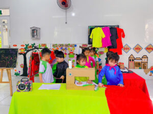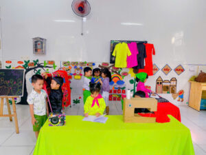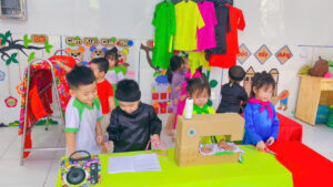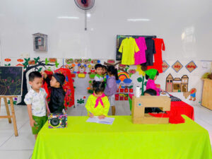 ❇️Để hiểu hơn về công việc của Thợ may, hôm nay các bé lớp chồi 2 cùng nhau tham gia hoạt động trải nghiệm làm những công việc hàng ngày trong tiệm may💫 🌱Ghé thăm tiệm may áo dài Sài Gòn, chúng ta sẽ bắt gặp những gương mặt hăng say, miệt mài của các thợ may nhí. Với chiếc thước dây đo vắt lên cổ, các thợ may nhí thực hiện việc đo, ghi số liệu, lựa chọn vải, may ủi quần áo…. vô cùng tỉ mỉ và không kém phần chuyên nghiệp❤️ 📸Ba mẹ cùng đón xem hình ảnh của các bé lớp chồi 2 cùng nhau tham gia làm thợ may nhí nhé❤️❤️❤️❤️❤️