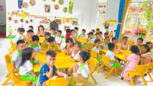 Mỗi bạn nhỏ lại được tự tay mình trang trí thêm những ngôi sao rực rỡ thêm yêu Tổ Quốc Việt Nam hơn nữa.